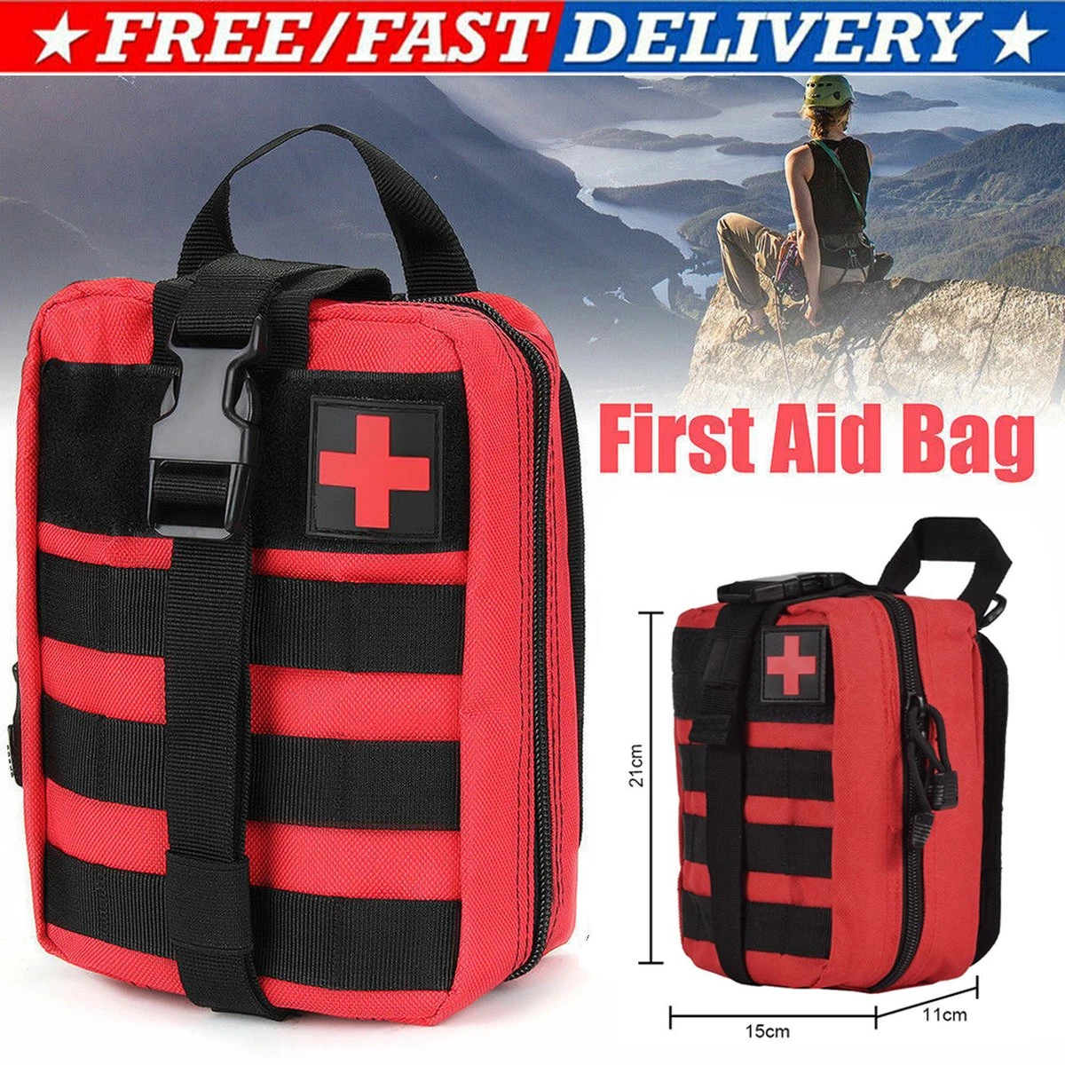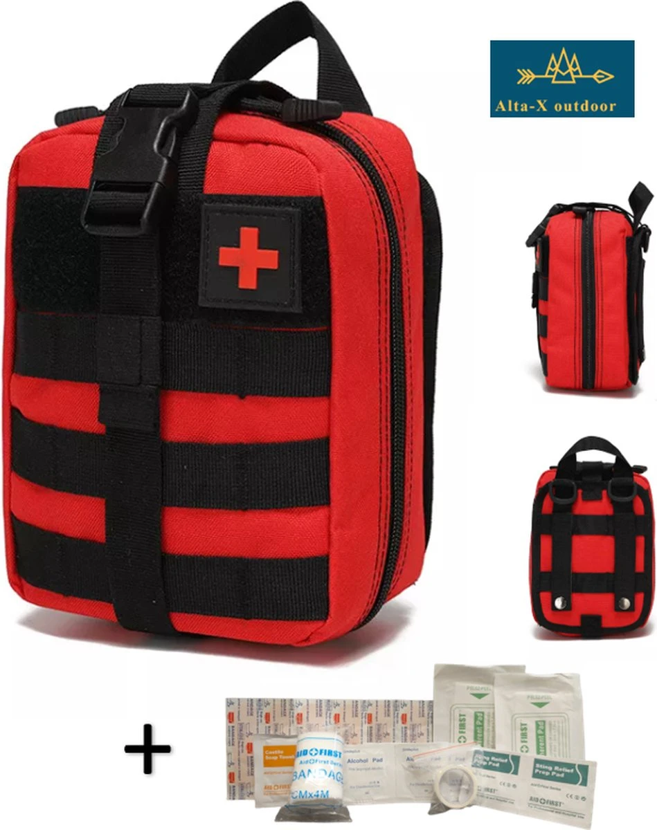 Alta-X Outdoor – Ehbo Tas Rood – Medicijntas – First Aid Bag – Jacht Survival Militaire Edc Pack Molle – Tactical Heuptas Outdoor Sos Pouch Leger Medische Kit Taille Riem Rugzak