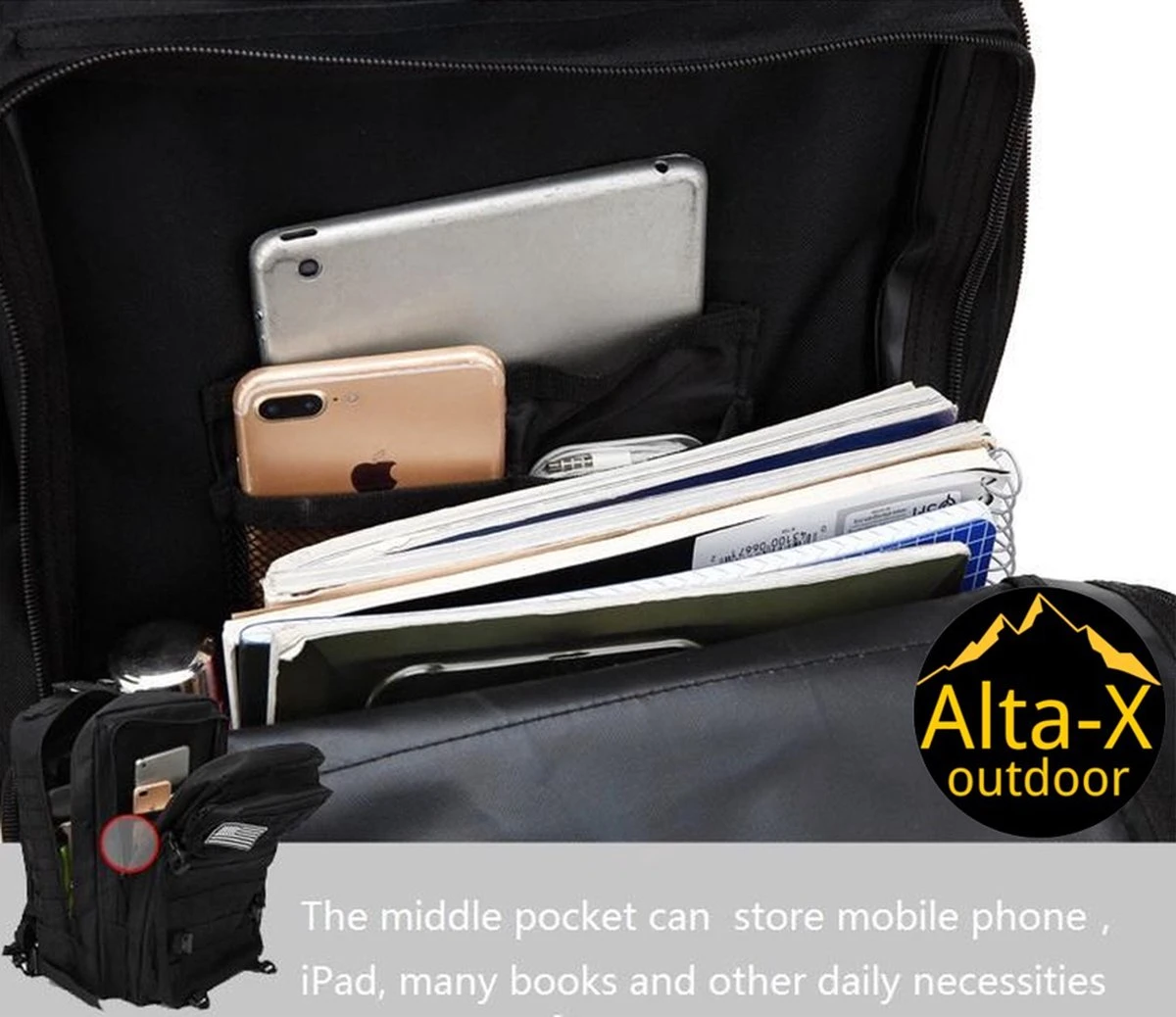Alta-X Tactical Backpack 45l | Tactische Rugzak | Leger Rugtas – Sport – School – Werk | Zwart – Leger Tas