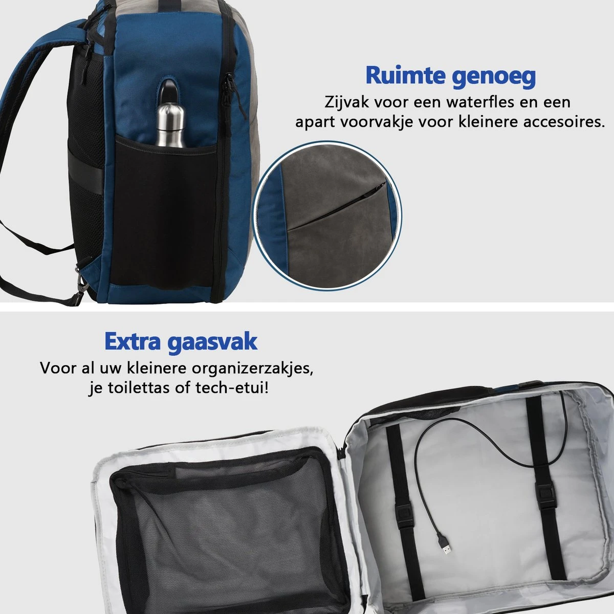 CabinMax Manhatten Reistas– Handbagage 30L – Rugzak Met USB Poort – Backpack – 45x36x20cm – Lichtgewicht – Nettuno Blauw