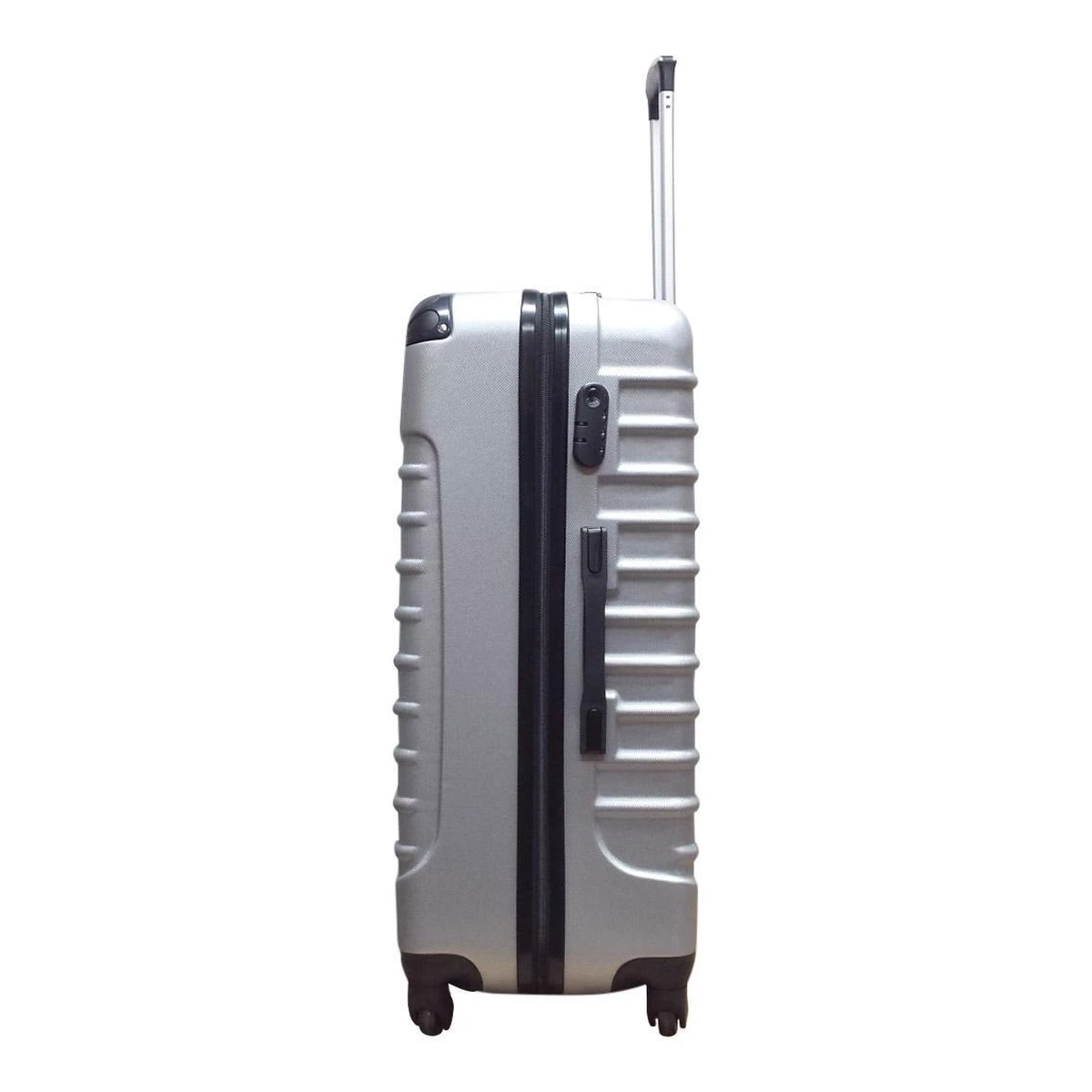 Grote ABS hardschalen koffer in kleur zilver. Koffer is voorzien van een ritssluiting rondom. Binnenin gevoerd en voorzien van tussenschot met ritssluiting en spanbanden. Koffer is op slot te zetten middels een vast cijferslot op de zijkant van de koffer. Handvat op bovenkant en zijkant en voorzien van een comfortabel 4-wiel systeem.