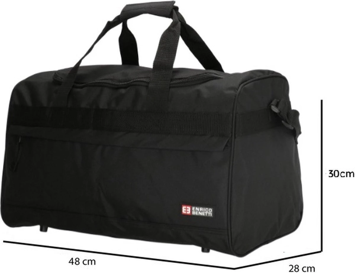 Deze sporttas / reistas van Enrico Benetti uit de San José serie is handzaam van formaat en daardoor ideaal in gebruik voor volwassen. In de tas kun je gemakkelijk je sportspullen kwijt of benodigdheden voor een weekendje weg. En in het voorvak en zijvak met ritssluiting berg je je kleinere spulletjes veilig op. Het hoofdvak rits je volledig open waardoor je alles in je tas gemakkelijk kunt vinden. Draag de tas aan de twee handvaten die je met een drukknoopje aan elkaar maakt of aan de lange verstelbare schouderband.
