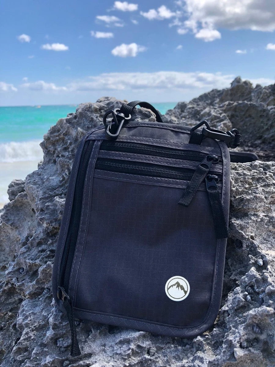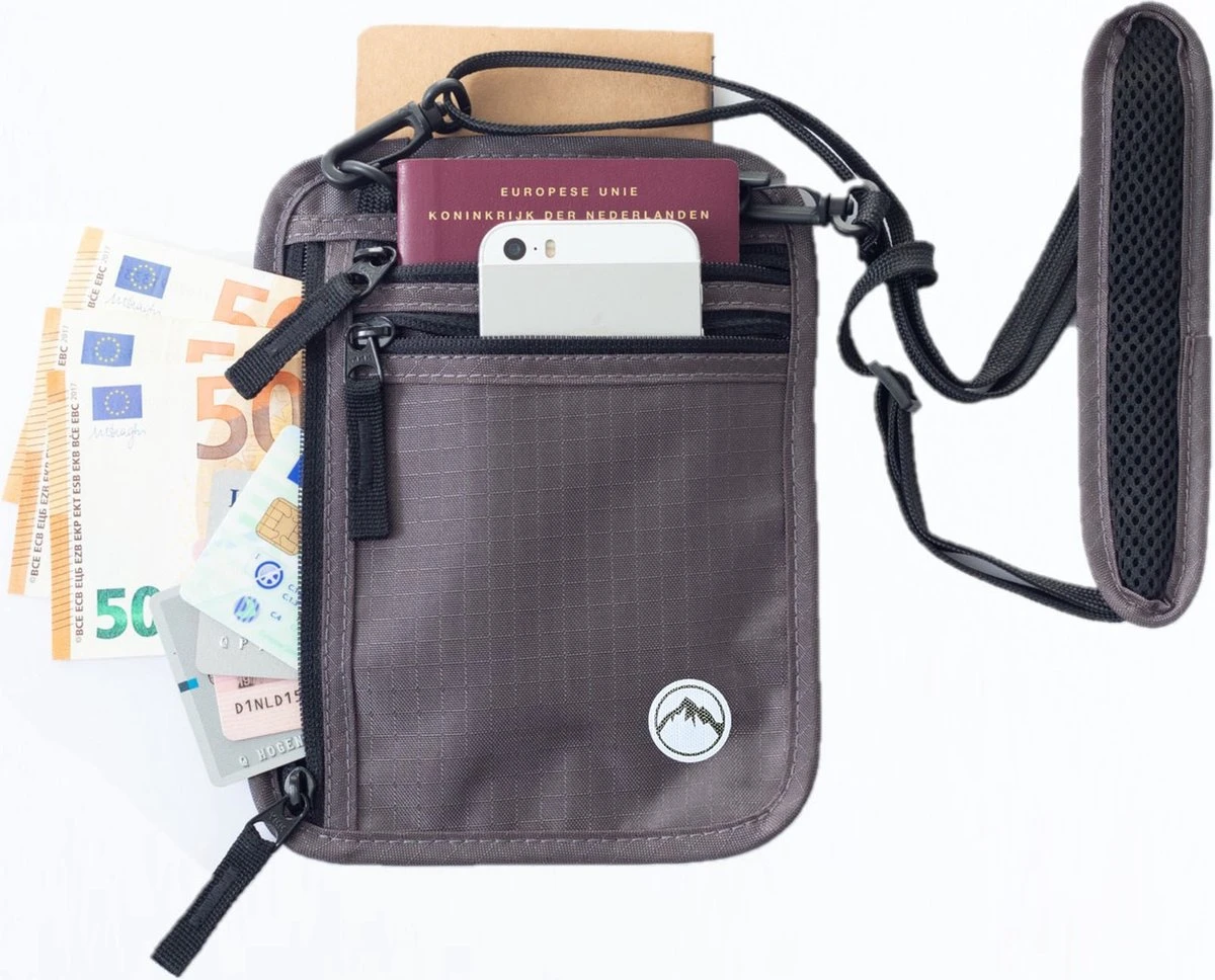 Groene Berg Nektasje – Reistas – Paspoorthouder Met RFID Blokkering – Reisportemonnee – Grijs