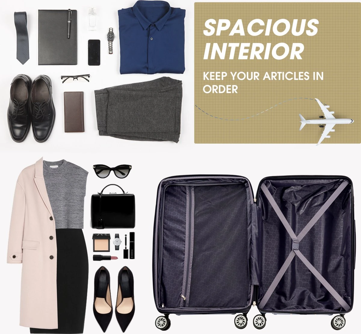 Merax 3-delig Kofferset Met TSA Slot – Trolleyset ABS 40L, 70L & 110 Liter – Goud