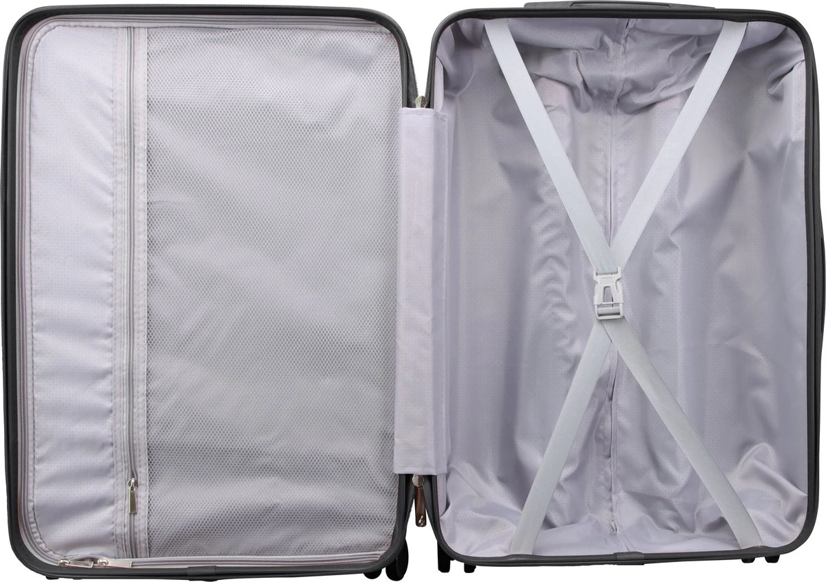 Deze betrouwbare koffer beschikt over al het nodigde voor u volgende vakantie. Een harde en veilige buitenkant, een aliminium trekstang, 3-cijferige slot, 4 dubbele flexibele wielen. De koffer is verkrijgbaar in 3 formaten. De middenmaat en grote maat zijn voorzien van stootrubbers, deze zorgen ervoor dat uw koffer tijdens transport zo min mogelijk beschadigd raakt. De stootrubbers bevinden zijn aan de lange zijde van de koffer. Zo beschikken de middenmaat en de grote maat ook voor een extra handvat. Deze zit onder het cijferslot. Doormiddel van deze extra handvat is het makkelijker om de zware koffer te verplaatsen of op te tillen in de auto, trein of bus. Binnen in de koffer is er een duidelijke en overzichtelijke verdeling. Aan de ene zijde een divider met 2 gekruiste spanbanden en aan de andere zijde een handige ritsvak. Dit maakt deze koffer van het merk Snowbal een betrouwbare reispartner met een fraaie design.